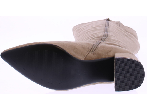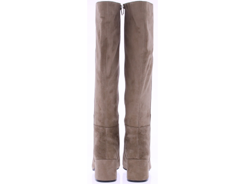 Zand suede lange dames laars van Di Lauro. De Di Lauro Beatrice laars heeft een rits aan de binnenkant. De leest is vrouwelijk spits maar door te 5 cm blokhak ook wat stoerder. Het voetbed is van leer en hij heeft een dunne rubberen zool.