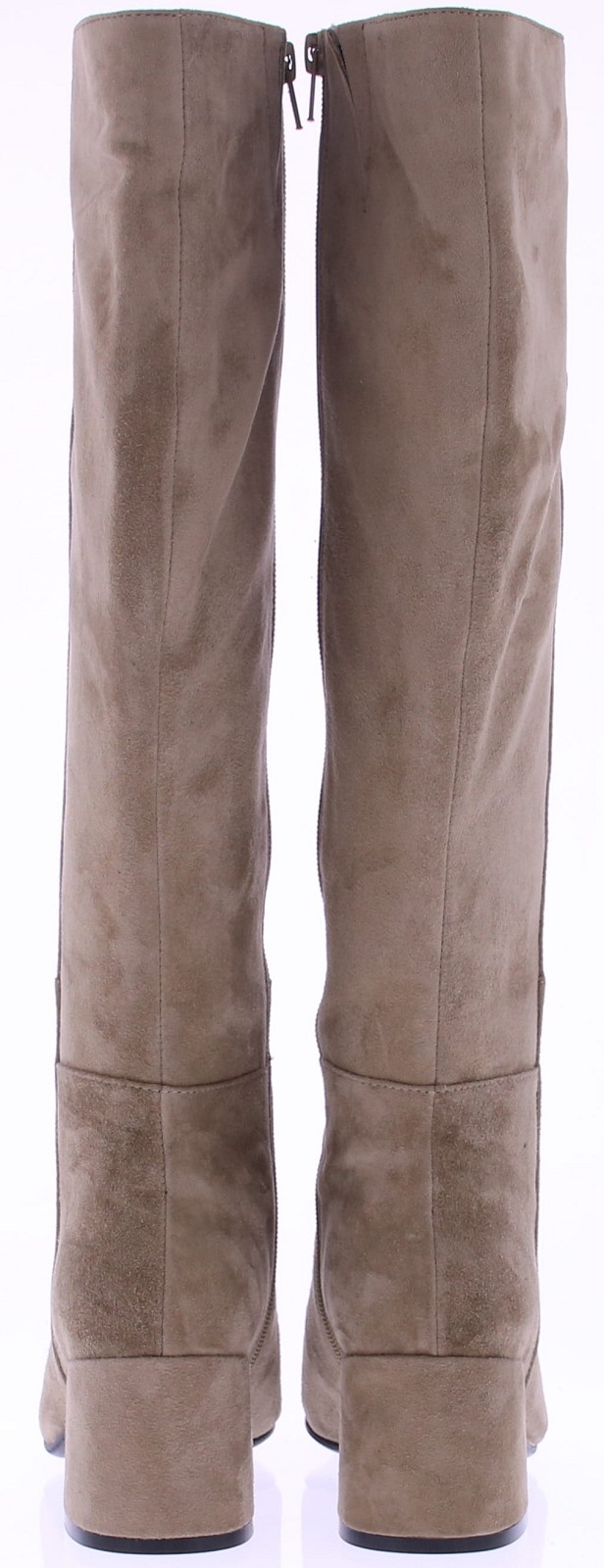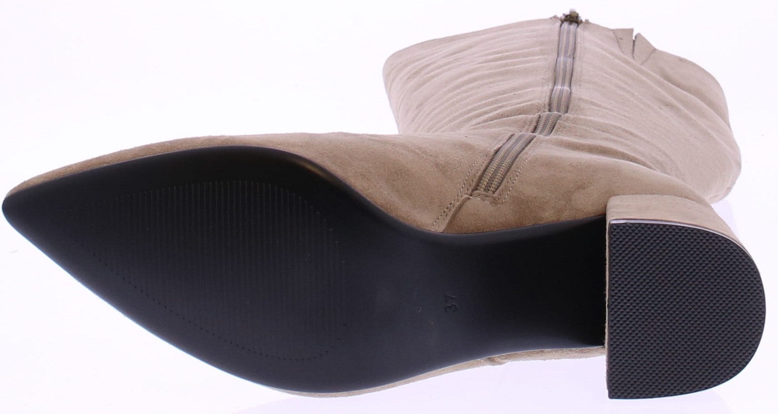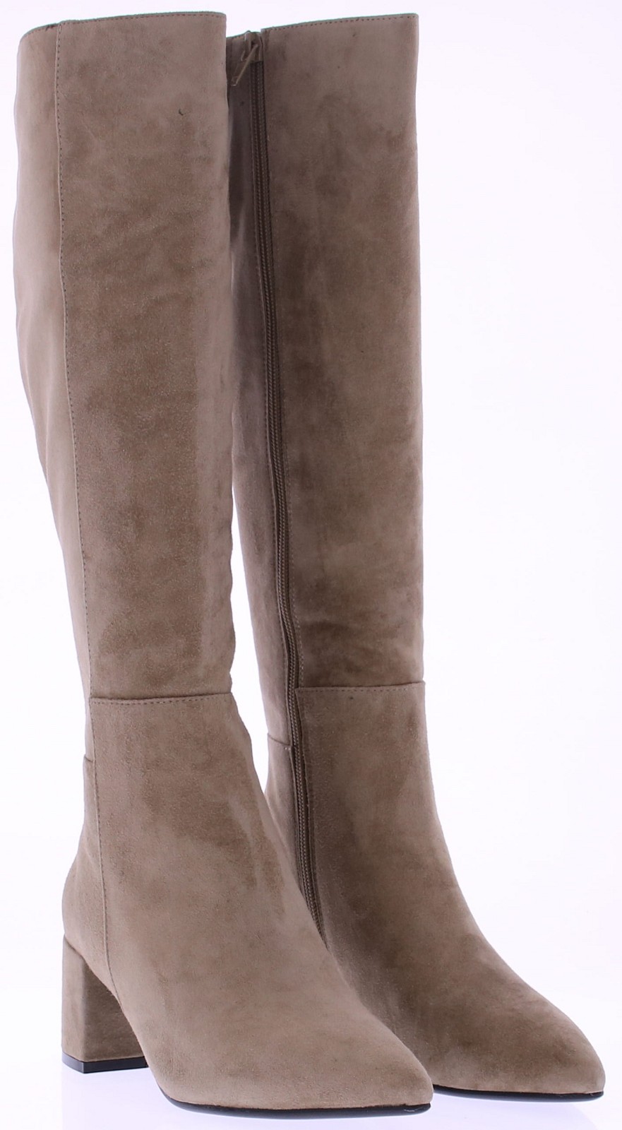 Zand suede lange dames laars van Di Lauro. De Di Lauro Beatrice laars heeft een rits aan de binnenkant. De leest is vrouwelijk spits maar door te 5 cm blokhak ook wat stoerder. Het voetbed is van leer en hij heeft een dunne rubberen zool.