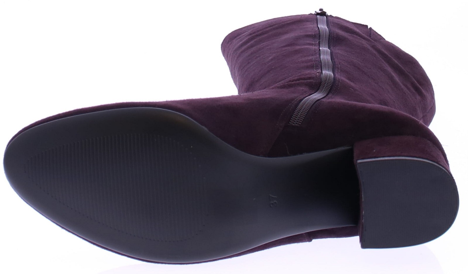 Bordo suede lange dames laars van Di Lauro. De laars heeft een rits aan de binnenkant. De zool heeft een plateau van 1 cm. En de comfortabele blokhak is 5 cm hoog. Het voetbed is van leer en hij heeft een rubberen zool.