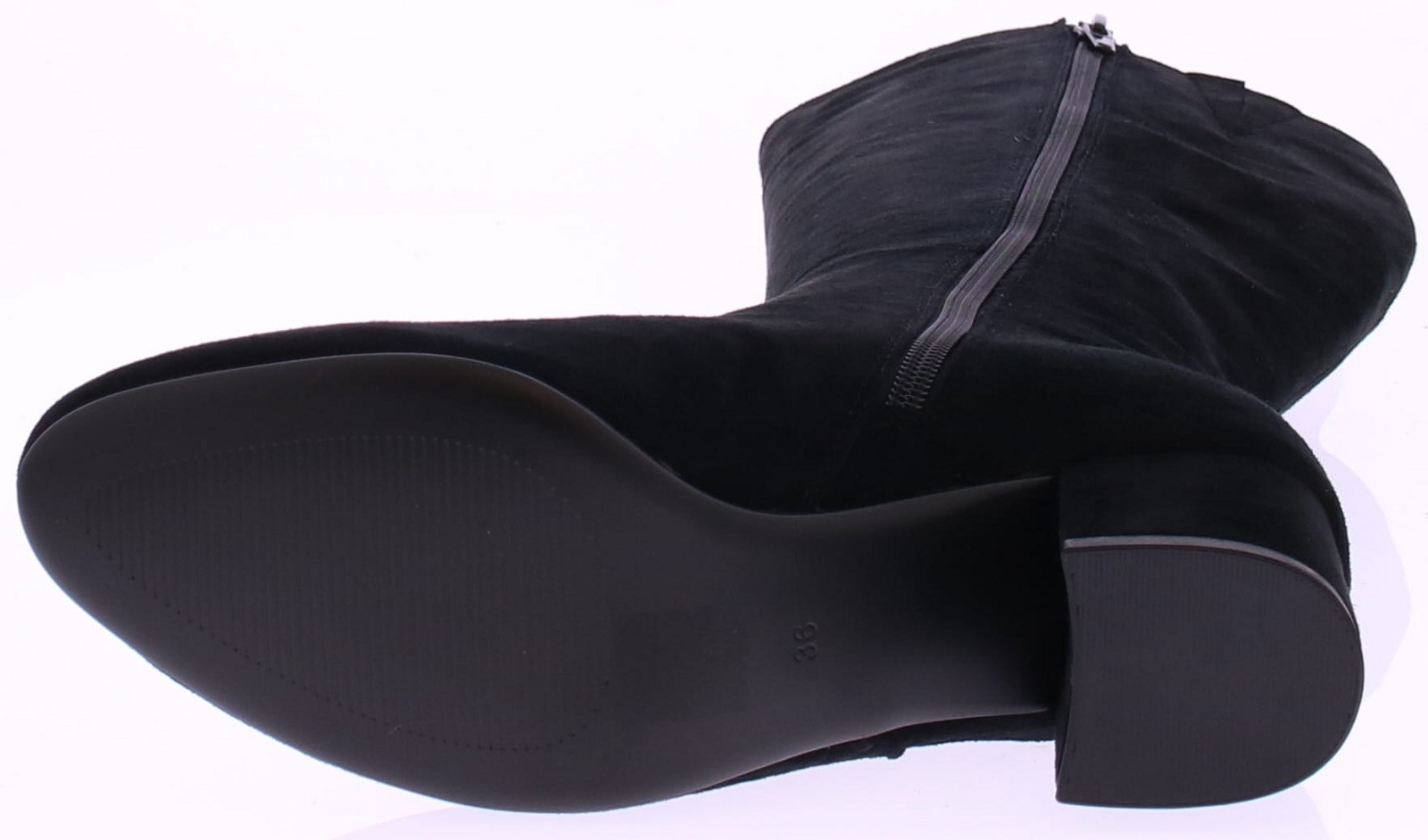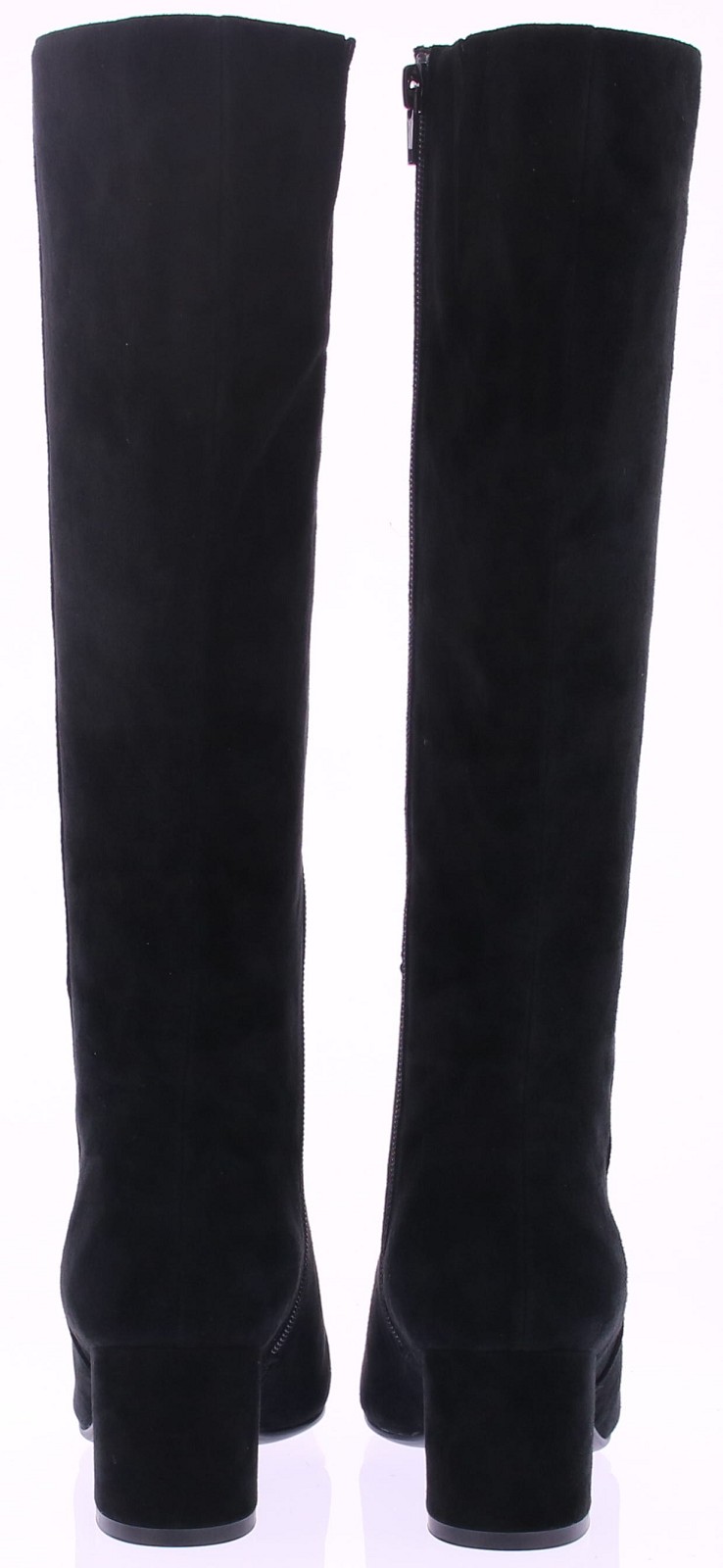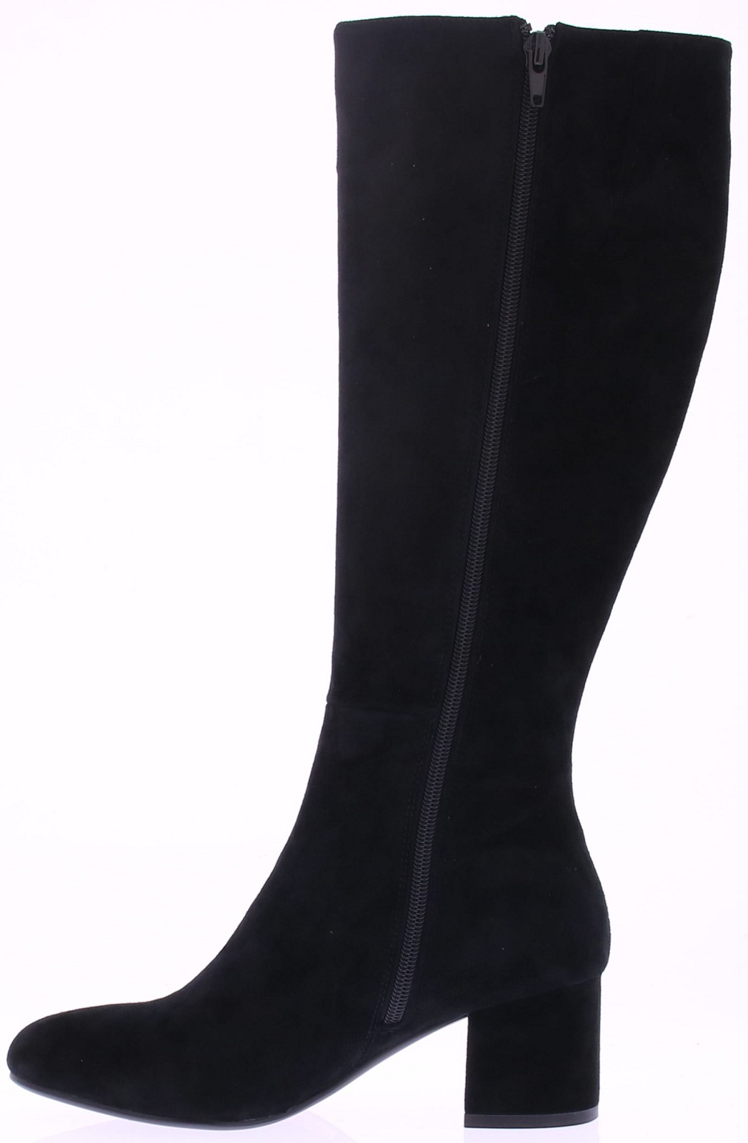 Zwart suede lange dames laars van Di Lauro. De laars heeft een rits aan de binnenkant. De leest is ovaal en de comfortabele blokhak is 5 cm hoog. Het voetbed is van leer en hij heeft een rubberen zool.