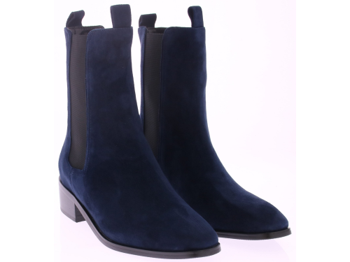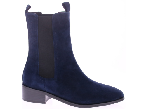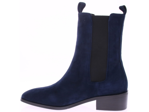 Donkerblauw suede dames enkellaars Bernice van Di Lauro. Deze elegante Chelsea boot is de perfecte combinatie van stijl en comfort. Dankzij de elastische zijpanelen en de handige aatreklussen stap je er moeiteloos in. De tussenhak van 3 cm geeft je net dat beetje extra lengte zonder in te leveren op draagcomfort.
