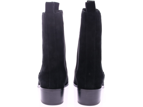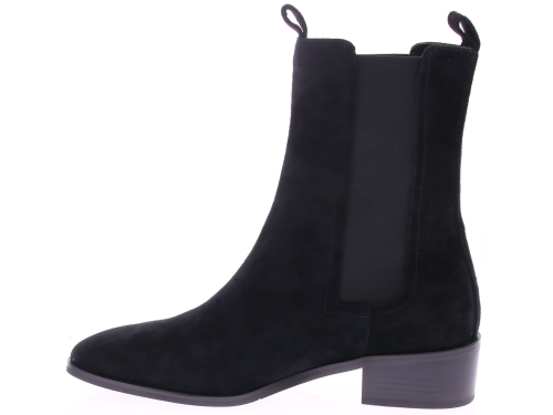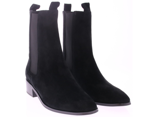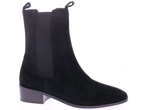 Zwart suede dames enkellaars Bernice van Di Lauro. Deze elegante Chelsea boot is de perfecte combinatie van stijl en comfort. Dankzij de elastische zijpanelen en de handige aatreklussen stap je er moeiteloos in. De tussenhak van 3 cm geeft je net dat beetje extra lengte zonder in te leveren op draagcomfort.