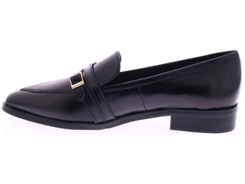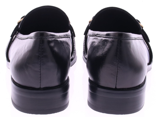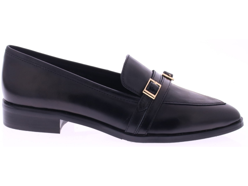 Zwart leren dames instapper van Di Lauro. Deze instapper heeft een ovale leest. En over de wreef een bandje in de zelfde kleur als de schoen met 2 kleine gespjes. Dit model is leer gevoerd, met een vast voetbed, en heeft een kunststof zool en een lage hak van 2 centimeter. Met deze mooie loafer geef je ieder outfit een chique uitstraling!