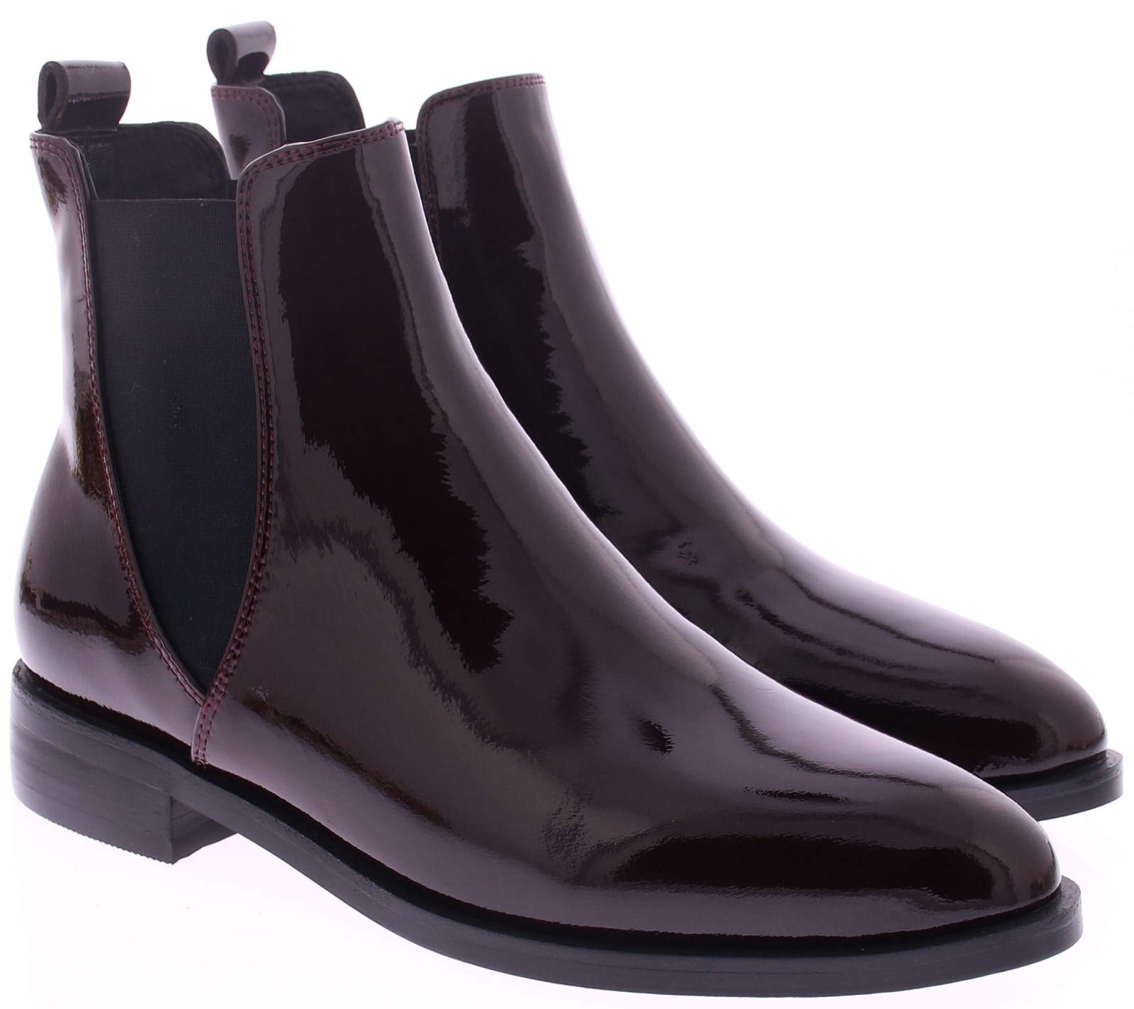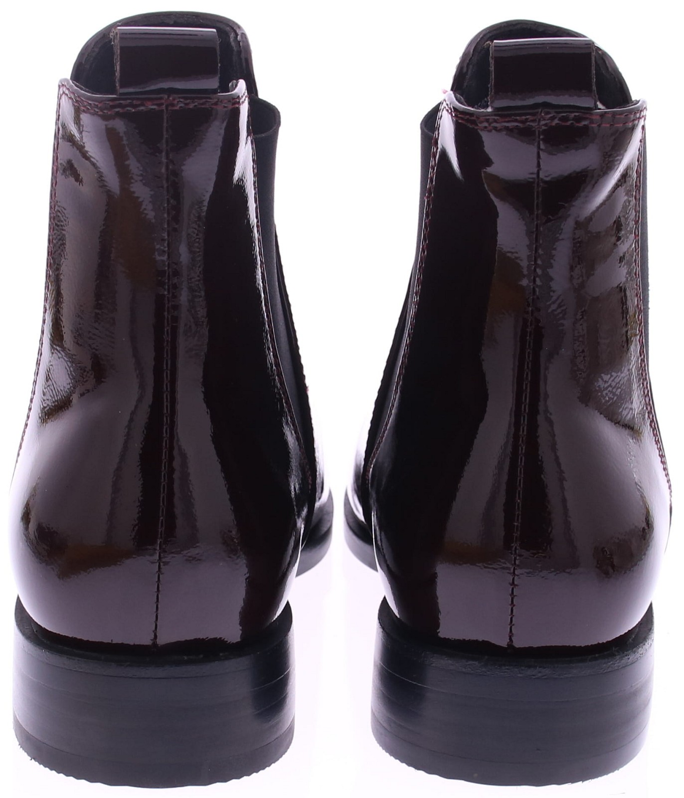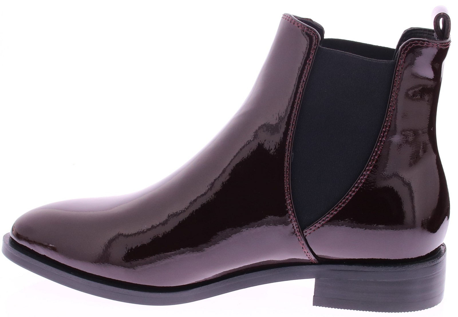 Bordeaux lakleren Chelsea laars voor dames van Di Lauro. Deze laars is uitgevoerd in glanzend bordeaux lakleer, en is voorzien van elastische inzetten aan de zijkanten voor een perfecte pasvorm en gemakkelijke instap. De rubberen zool biedt een goede grip, terwijl de subtiele hak van 2 cm zorgt voor een verfijnde uitstraling.