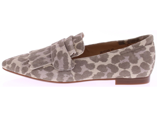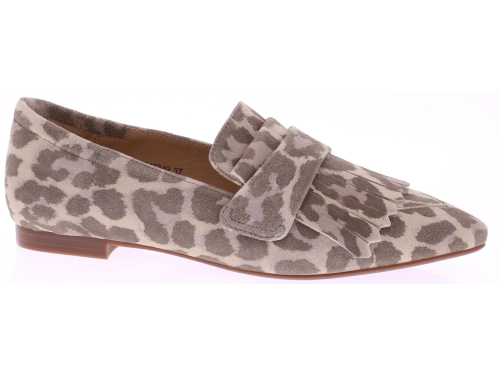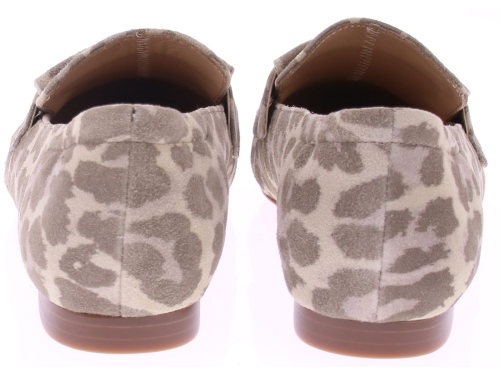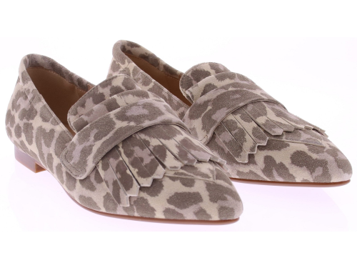 Suède dames instappers van Di Lauro model Dasia met een vervaagde panterprint. Deze instapper heeft een jamboreeklep en een spitse neus. Het soepele suède en de subtiele print geven de schoen een modieuze uitstraling. Perfect te combineren met zowel een casual broek als een zomerse jurk.