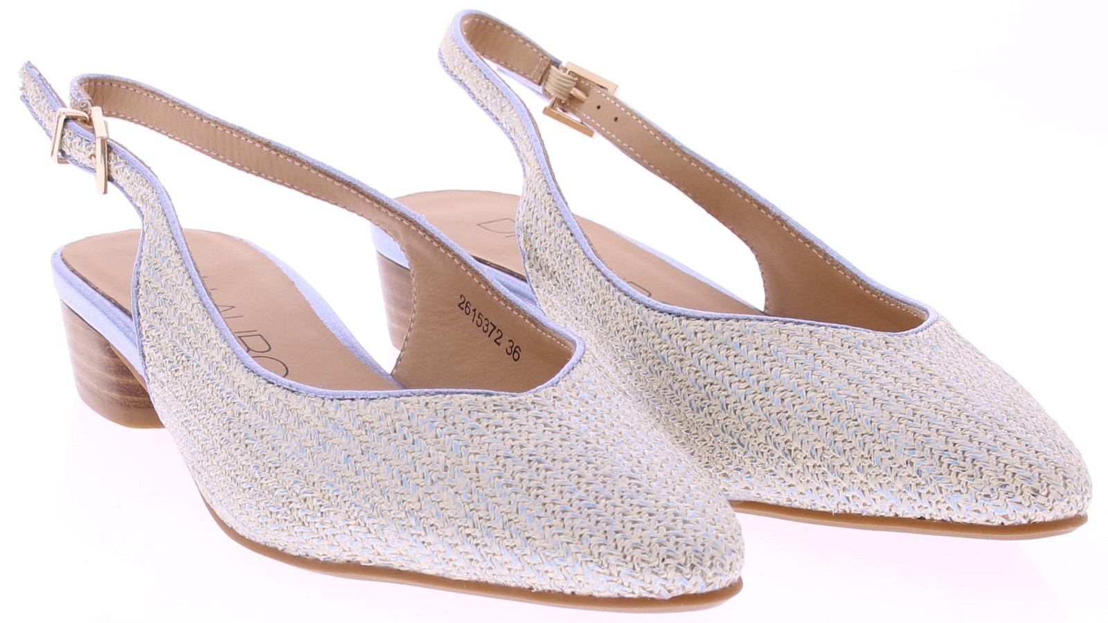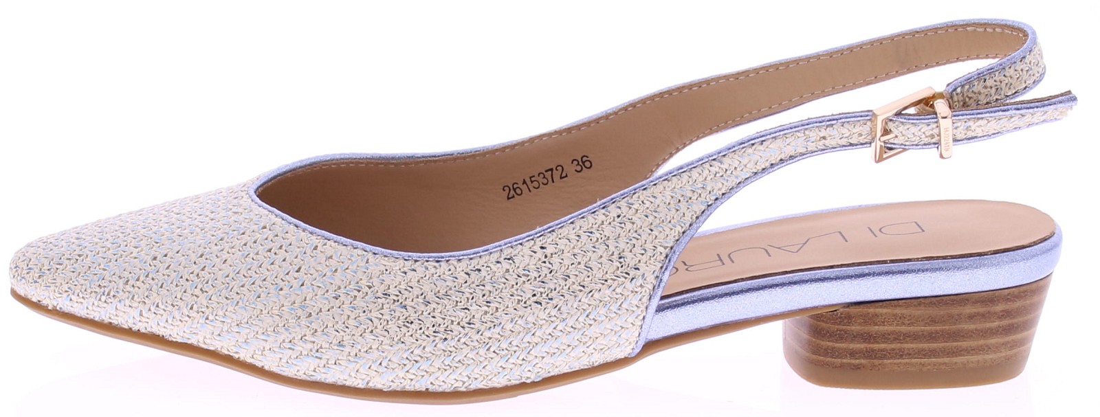 Lichtblauw metallic print dames slingback pumps van Di Lauro, model Danila. Deze slingback pump heeft een spitse neus. De open hiel is voorzien van een verstelbaar gespje voor een goede pasvorm. De hak is 3 cm hoog en de rubberen zool zorgt voor stevige grip en prettig loopcomfort. Een stijlvolle pump die past bij zowel zomerse als formele outfits.