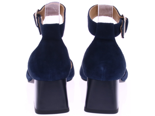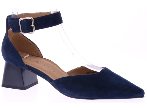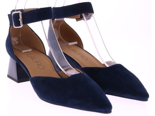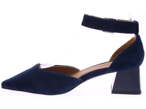 Donkerblauw suède dames pumps van Di Lauro model Delia. Deze pump heeft een comfortabele 5 cm tussenhak en geeft precies de juiste hoogte voor dagelijks gebruik, terwijl de dichte teen en dichte hiel zorgen voor een luchtige, maar ondersteunende pasvorm. De verstelbare enkelband voegt een sierlijk detail toe en garandeert een goede aansluiting rond de voet. Een tijdloze keuze die zowel chic als praktisch is. "Ondek ook de andere dames pumps van Di Lauro bij Klijsen."