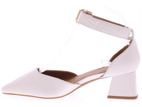 Roomkleurig leren dames pumps van Di Lauro model Delia. Deze pump heeft een comfortabele 5 cm tussenhak en geeft precies de juiste hoogte voor dagelijks gebruik, terwijl de dichte teen en dichte hiel zorgen voor een luchtige, maar ondersteunende pasvorm. De verstelbare enkelband voegt een sierlijk detail toe en garandeert een goede aansluiting rond de voet. Een tijdloze keuze die zowel chic als praktisch is. "Ondek ook de andere dames pumps van Di Lauro bij Klijsen."