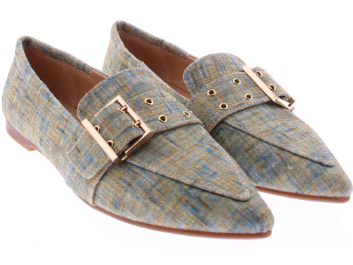 Multikleurige dames instappers van Di Lauro, model Diomira. Deze instapper heeft een spitse neus en een brede band over de wreef, afgewerkt met een goudkleurige gesp voor een stijlvol accent. De leren voering zorgt voor comfortabel dragen en de rubberen zool biedt soepele ondersteuning bij dagelijks gebruik. Een uitgesproken en veelzijdig model dat mooi staat bij zowel een nette broek als een zomerse jurk. "Ondek ook de andere dames instappers van Di Lauro bij Klijsen."