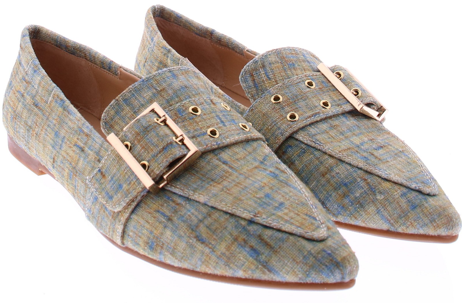Multikleurige dames instappers van Di Lauro, model Diomira. Deze instapper heeft een spitse neus en een brede band over de wreef, afgewerkt met een goudkleurige gesp voor een stijlvol accent. De leren voering zorgt voor comfortabel dragen en de rubberen zool biedt soepele ondersteuning bij dagelijks gebruik. Een uitgesproken en veelzijdig model dat mooi staat bij zowel een nette broek als een zomerse jurk. "Ondek ook de andere dames instappers van Di Lauro bij Klijsen."