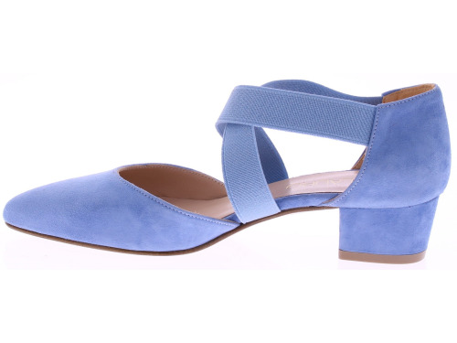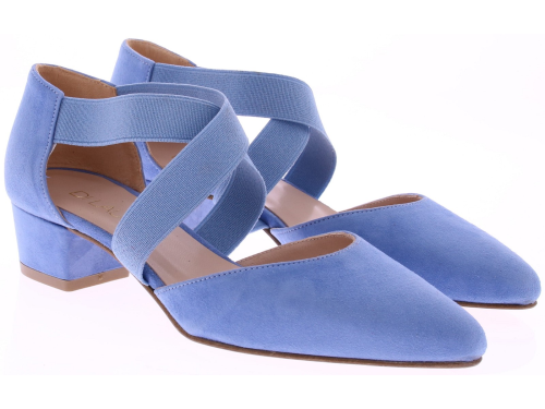 Lichtblauw suède dames pumps van Di Lauro, model Dalia. Deze elegante pump heeft een iets spitse neus, een comfortabele hakhoogte van 3 cm en zachte elastieken banden die de voet omsluiten. Het soepele suède sluit mooi aan en de leren voering biedt een aangename pasvorm voor dagelijks gebruik én speciale gelegenheden. Een veelzijdige en stijlvolle keuze binnen de collectie van Di Lauro. Ontdek ook de andere dames pumps van Di Lauro bij Klijsen.