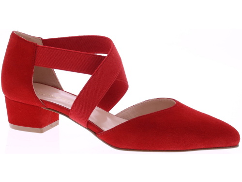 Rood suède dames pumps van Di Lauro, model Dalia. Deze elegante pump heeft een iets spitse neus, een comfortabele hakhoogte van 3 cm en zachte elastieken banden die de voet omsluiten. Het soepele suède sluit mooi aan en de leren voering biedt een aangename pasvorm voor dagelijks gebruik én speciale gelegenheden. Een veelzijdige en stijlvolle keuze binnen de collectie van Di Lauro. Ontdek ook de andere dames pumps van Di Lauro bij Klijsen.