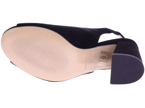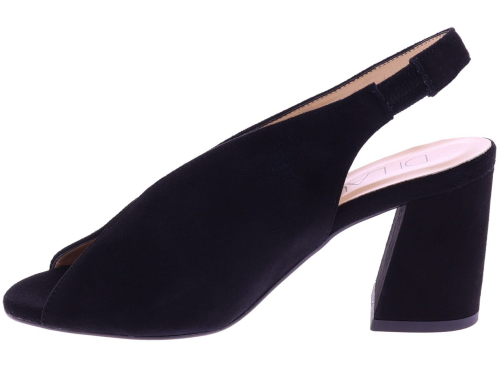 Zwart suède dames sandaal van Di Lauro. Model Rosette is uitgevoerd in soepel leer en heeft een elegante rechte blokhak van 7 cm. De open teen en open hiel met elastische inzet zorgen voor een fijne pasvorm, terwijl het zachte voetbed prettig draagt op warmere dagen. Een moderne, stijlvolle keuze die veelzijdig te combineren is bij zowel jurken als zomerse pantalons. Ontdek ook de andere dames pumps van Di Lauro bij Klijsen.
