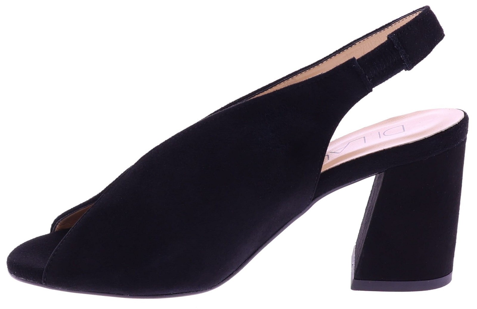 Zwart suède dames sandaal van Di Lauro. Model Rosette is uitgevoerd in soepel leer en heeft een elegante rechte blokhak van 7 cm. De open teen en open hiel met elastische inzet zorgen voor een fijne pasvorm, terwijl het zachte voetbed prettig draagt op warmere dagen. Een moderne, stijlvolle keuze die veelzijdig te combineren is bij zowel jurken als zomerse pantalons. Ontdek ook de andere dames pumps van Di Lauro bij Klijsen.