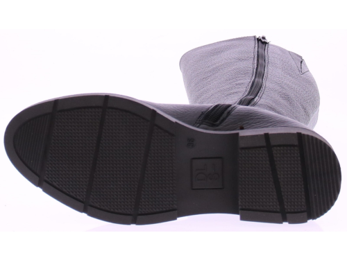 Zwarte lange leren dames laars van DL Sport. Deze stilvolle hoge laars is uitgevoerd in soepel grain leer, herkenbaar aan de verfijnde structuur en rijke uitstraling. Het model combineert modern comfort met Italiaanse klasse en is voorzien van een ritssluiting aan de binnenzijde. De comfortabele rubberen loopzool en het uitneembare voetbed maken deze laars geschikt voor dagelijks gebruik, ook met eigen zolen. De zachte voering is van leer.