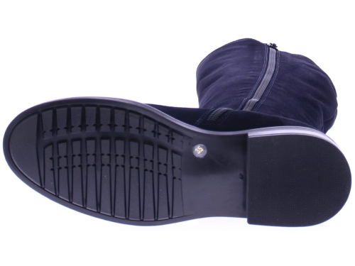 Donkerblauw suede lange dames laars van DL Sport. Deze hoge sportief-elegante laars is uitgevoerd met aan de zijkant van de schacht elastische banen die zorgen voor een flexibele en elegante aansluiting om het been. De ritssluiting aan de binnenzijde maakt het aan-en uittrekken eenvoudig. Dankzij het uitneembare voetbed is deze laars perfect geschikt voor eigen steunzolen, zonder in te leveren op stijl.
