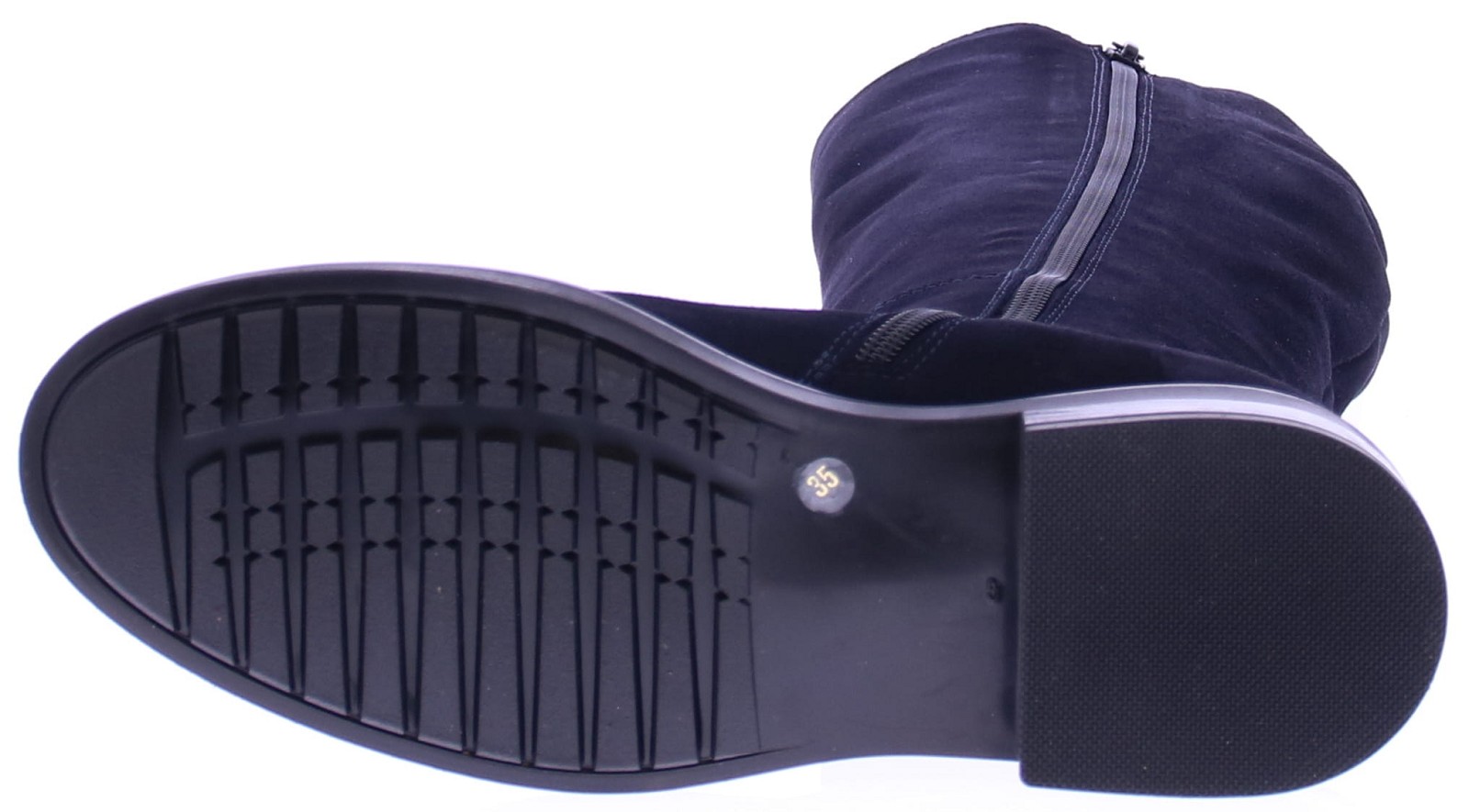 Donkerblauw suede lange dames laars van DL Sport. Deze hoge sportief-elegante laars is uitgevoerd met aan de zijkant van de schacht elastische banen die zorgen voor een flexibele en elegante aansluiting om het been. De ritssluiting aan de binnenzijde maakt het aan-en uittrekken eenvoudig. Dankzij het uitneembare voetbed is deze laars perfect geschikt voor eigen steunzolen, zonder in te leveren op stijl.