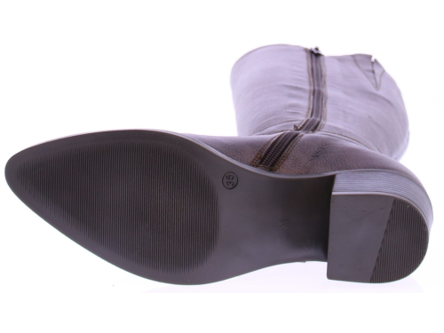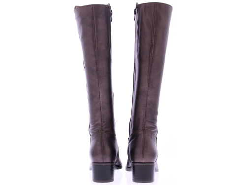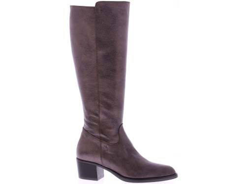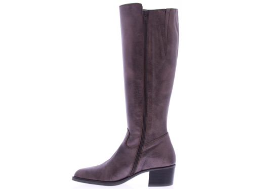 Bruin metallic leren lange dames laars van DL Sport. Deze sportief- elegante hoge laars is de perfecte mix van luxe, comfort en funtionaliteit. Gemaakt van hoogwaardig grain leer - soepel leer met een fijne structuur - dat zorgt voor een rijke, natuurlijke uitstraling. Dankzij de ritssluiting aan de binnenzijde is de laars gemakkelijk aan te trekken. Het uitneembare voetbed biedt ruimte voor eigen steunzolen en extra comfort. De stevige hak van 4 cm geeft een vrouwlijke lift zonder in te leveren op stabiliteit.