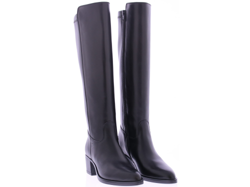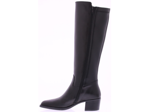 Zwart leren lange dames laars van DL Sport. Deze sportief- elegante hoge laars is de perfecte mix van luxe, comfort en funtionaliteit. Gemaakt van hoogwaardig kalfsleer. De XS schacht is aan de achterzijde uitgevoerd in een elastisch stretchmateriaal, waardoor de laars zich elegant vormt naar het been. Dankzij de ritssluiting aan de binnenzijde is de laars gemakkelijk aan te trekken. Het uitneembare voetbed biedt ruimte voor eigen steunzolen en extra comfort. De stevige hak van 4 cm geeft een vrouwlijke lift zonder in te leveren op stabiliteit.