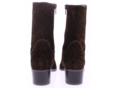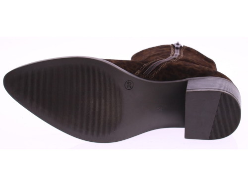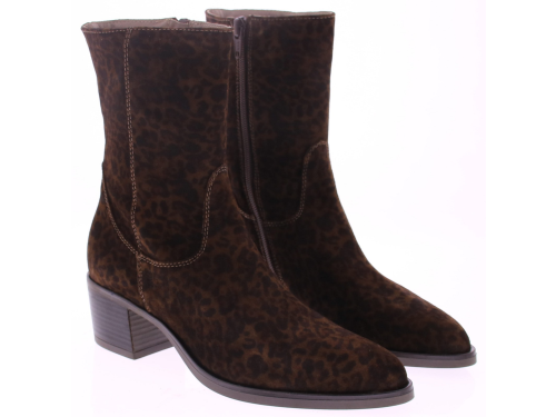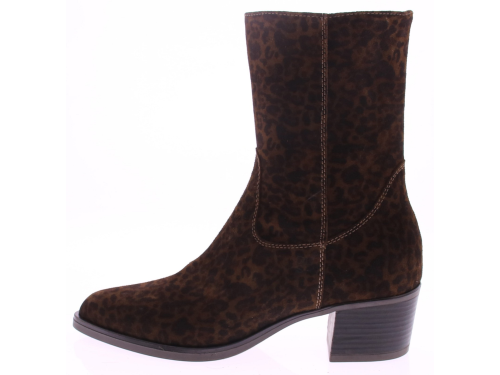Donkerbruin suede dames enkellaars van DL Sport. Uitgevoerd in een subtiele panterprint. Deze laars combineert een modieuze uitstralling met een hoog draagcomfort. De ritssluiting aan de binnenzijde zorgt voor gemakkelijk aan- en uittrekken, terwijl het uitneembare voetbed deze laars geschikt maakt voor eigen inlegzolen. De stevige blokhak geeft een vrouwlijke lift en biedt tegelijkertijd stabilitet - ideaal voor elke dag.