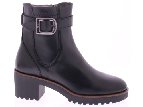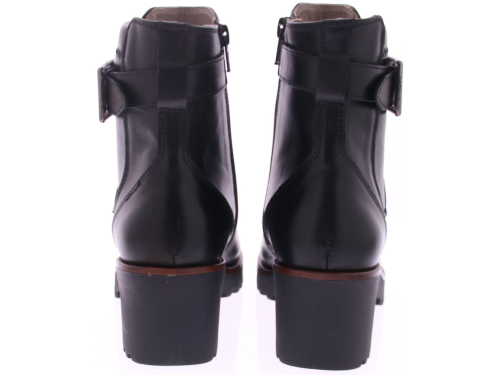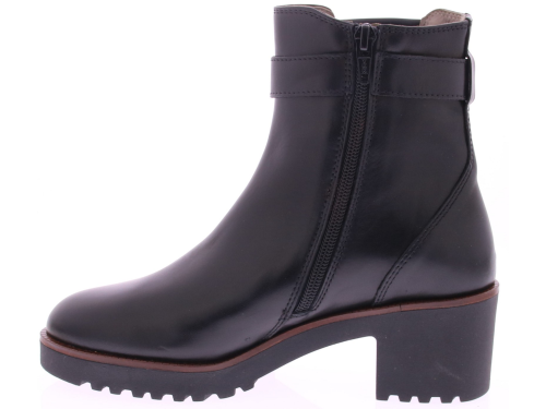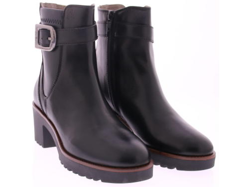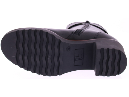 Zwart leren dames enkellaars van DL Sport. Dit korte laarsje met gespdetail is de perfecte combinatie van stoer en stijlvol. Gemaakt van hoogwaardig glad kalfsleer en voorzien van een stevige rubberen blokhak van 5 cm, biedt deze laars zowel comfort als een krachtige uitstraling. De opvallende zilverkleurige gesp aan de enkel geefet een modieus accent, terrwijl de profielzool zorgt voor een goede grip tijdens het lopen. De laars is aan de binnenzijde voorzien van een rits. Het gedeelt onder de gesp aan de zijkant is van gestretched materaal waardoor het mooi om het been sluit. Het voetbed is uitneembaar.