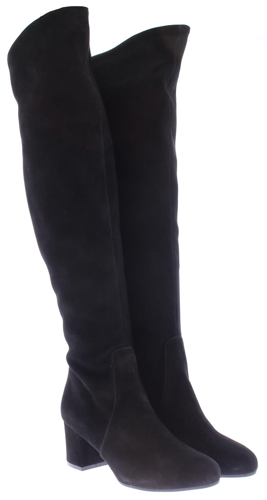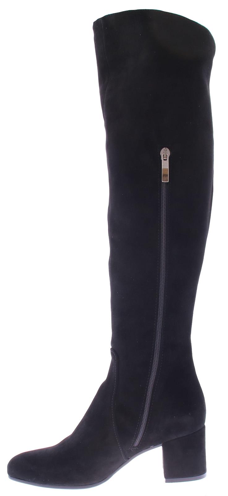 Zwart suede dames hoge laarzen van Donna Lei. Deze laars heeft een mooie afgeronde basic leest, komt net over de knie en heeft een blokhak van 5 cm hoog. Aan de binnenkant een driekwart rits om het aan en uit trekken te versoepelen. De zool is een combinatie van leer en rubber.