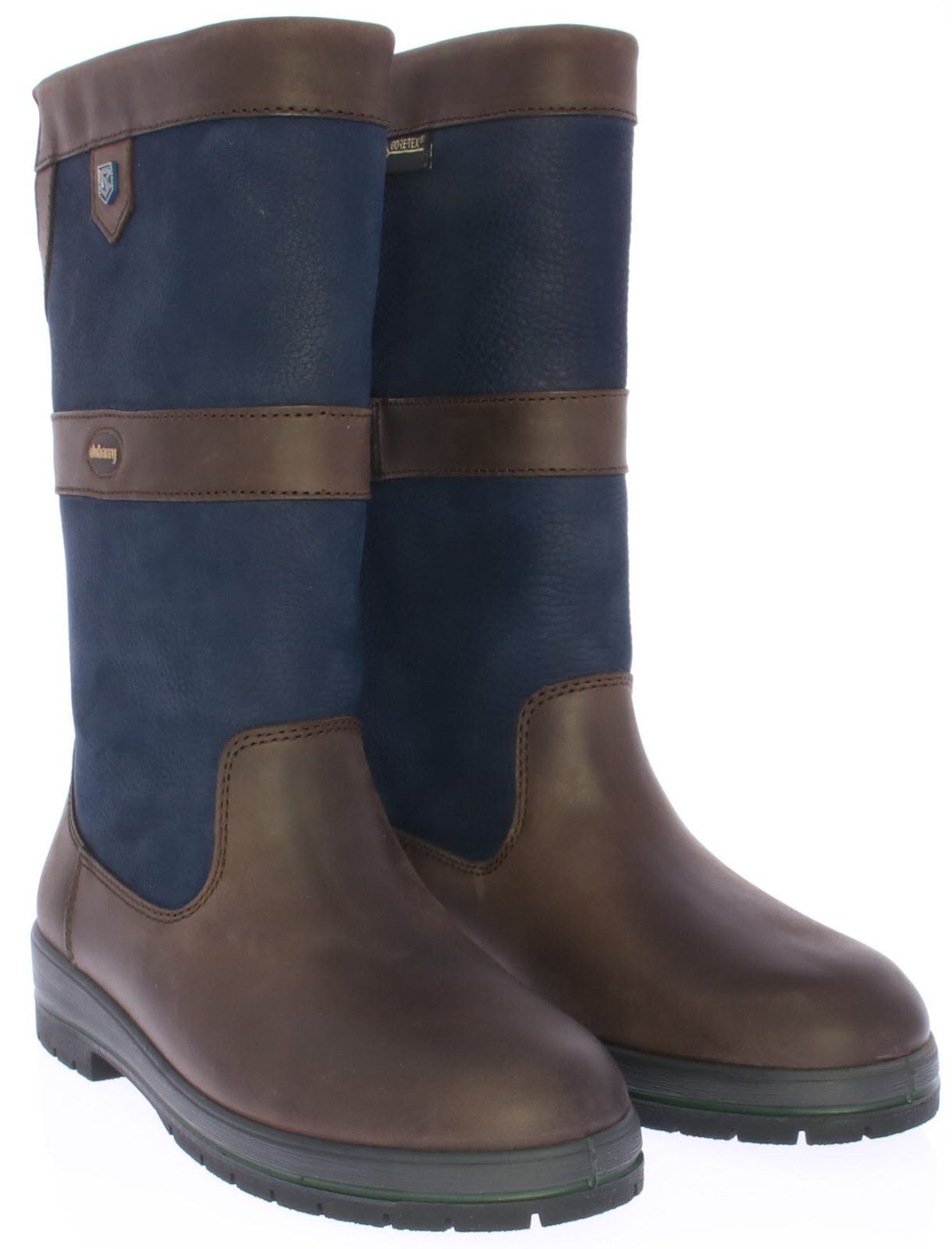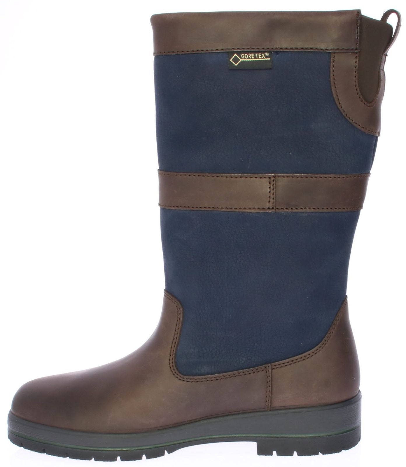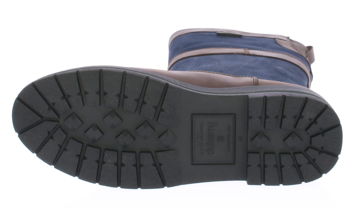 Bruin/blauwe leren uniseks driekwart laars van Dubarry. De Dubarry laarzen zijn helemaal voorzien van Gore-tex, waardoor ze waterdicht zijn. Het bruine gedeelte is uitgevoerd in gevet glad leer en het blauwe gedeelte in donkerblauw gevette nubuck. Een ideale laars voor bos, strand, manege en sneeuw. Ze mogen afgespoeld worden. Daarna goed aan de lucht laten drogen en weer voeden met het juiste onderhoud voor gevet leer.