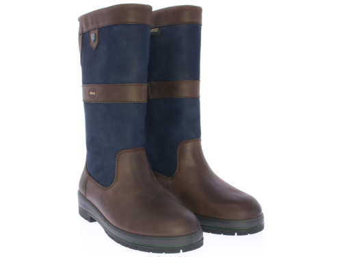 Bruin/blauwe leren uniseks driekwart laars van Dubarry. De Dubarry laarzen zijn helemaal voorzien van Gore-tex, waardoor ze waterdicht zijn. Het bruine gedeelte is uitgevoerd in gevet glad leer en het blauwe gedeelte in donkerblauw gevette nubuck. Een ideale laars voor bos, strand, manege en sneeuw. Ze mogen afgespoeld worden. Daarna goed aan de lucht laten drogen en weer voeden met het juiste onderhoud voor gevet leer.