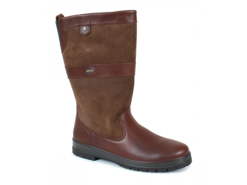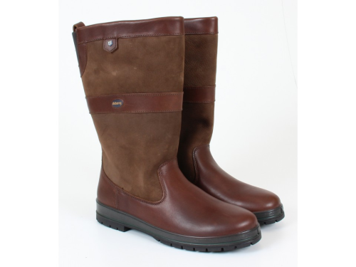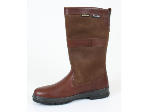 Bruine lange waterdichte dames laars van Dubarry. Uitgevoerd in een combinatie van gevet bruin leer met gevette bruine nubuck. Door de gore-tex die verwerkt is tussen het leer aan de buitenkant en de binnenvoering, is de laars waterdicht. De ideale laars voor regen, hond uitlaten, manege en sneeuw. Regelmatig het leer voeden en na aanraking met bijvoorbeeld zeewater, mest, pekel etc. gelijk goed afspoelen. Dan rustig aan de lucht laten drogen en weer voeden met leervet op het leren gedeelte en waxspray op het nubuck gedeelte. Ook verkrijgbaar in herenmaten. Deze laarzen vallen kleiner uit.