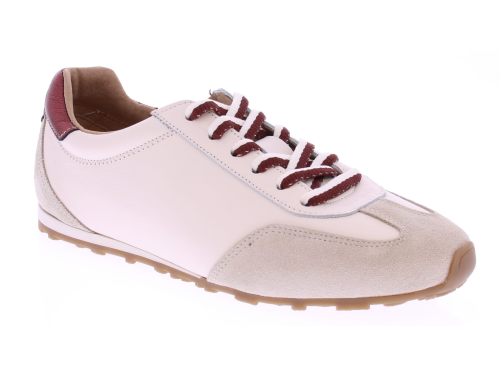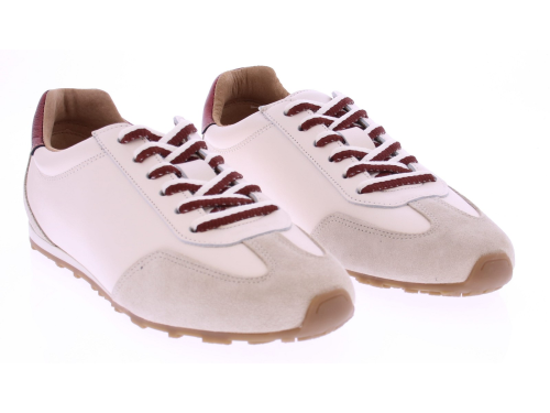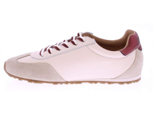 Wit leer met suede dames sneaker van DWRS. De Sava is afgewerkt met beige suede op de hiel en neus. Het leren voetbed is uitneembaar. Leuke trendy sneaker . Goed te combineren met bijvoorbeeld een wijde jeans of lange jurk of rok.