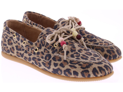 Leopard print suède dames bootschoen van DWRS. De Latty Mocassin in leopard print is een echte musthave voor in je kast en kan het hele jaar door worden gedragen. De mocassin heeft een lichte (“latte”) zool en leren veters aan de voorzijde, waarmee je de schoen naar wens strakker kunt aantrekken. De buitenkant is gemaakt van hoogwaardig suède en de voering is van leer.