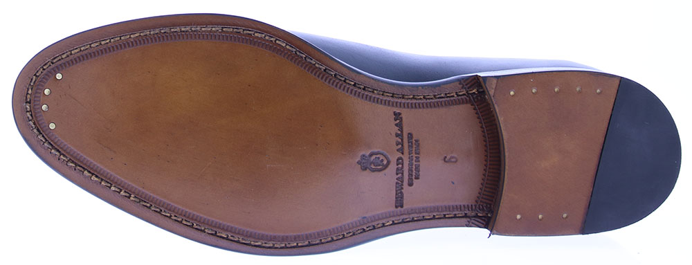 Heren wholecut veterschoen van Edward Allan in Goodyear constructie op een leren zool. De schoen is leer gevoerd.