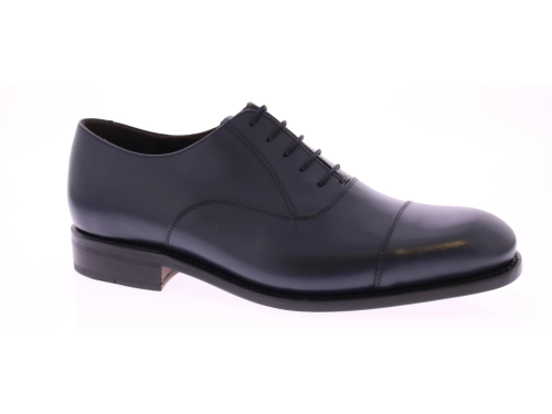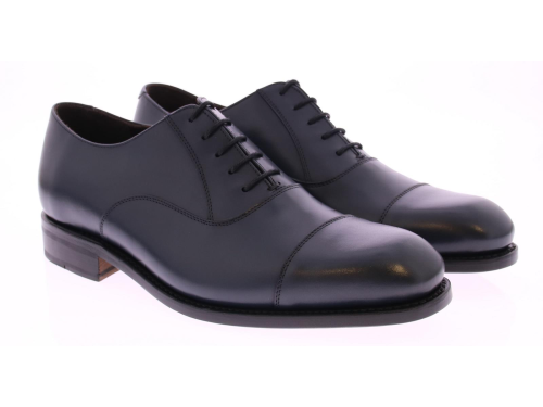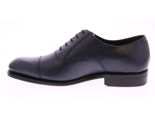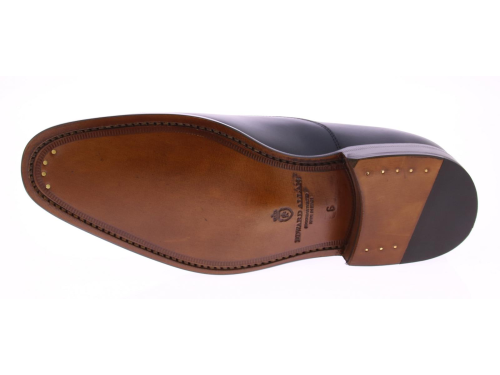 Heren veterschoen met neusnaad van Edward Allan uitgevoerd in donkerblauw kalfsleer op leren zool en een leren voering.
