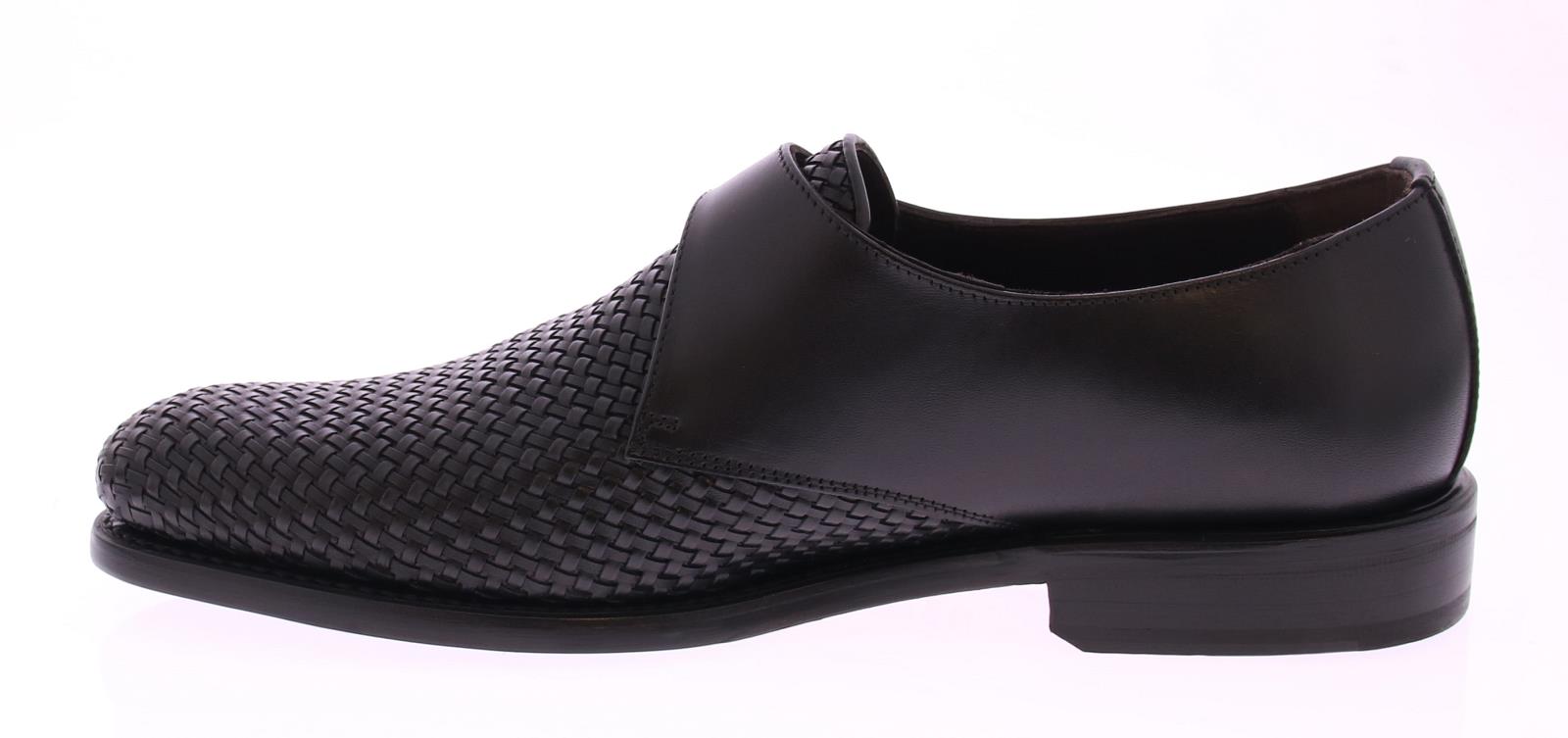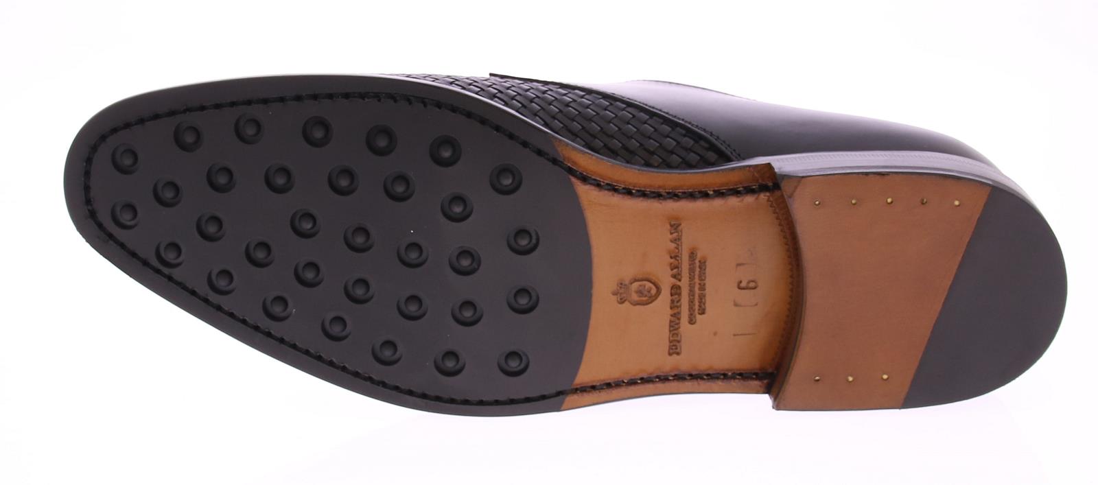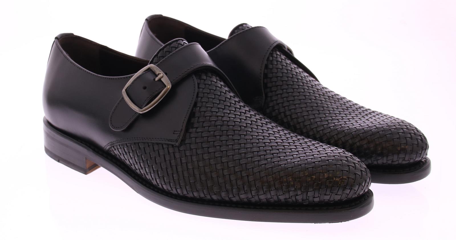 Heren gesp schoen in gevlochten zwart leer van Edward Allan. De Elvis artikel 30189 heeft een bovenwerk van gevlochten leer en sluit met een gesp. De zool is van rubber.