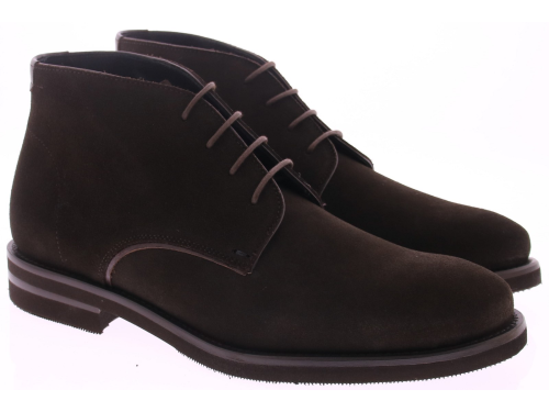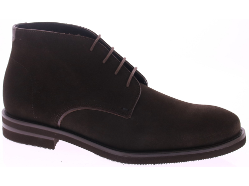 Heren enkelboot van Edward Allan artikel 33320. De schoen is uitgevoerd in donker bruin kalfs suède op een rubber onderwerk met een kalfs leren voering.