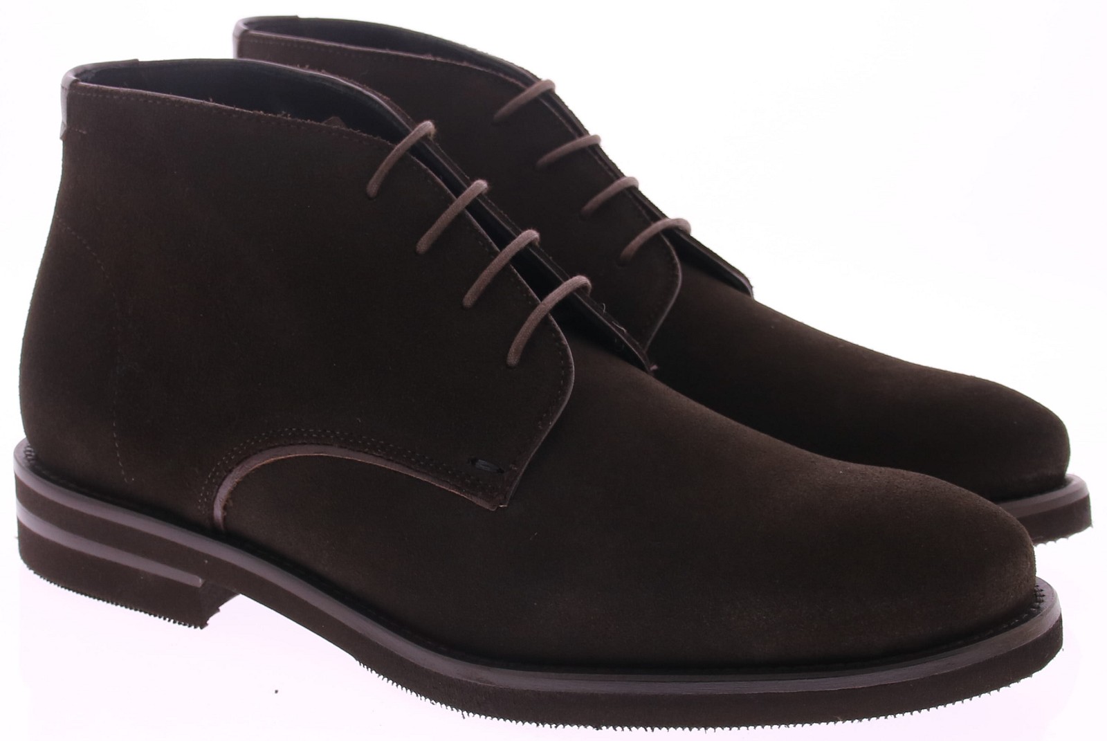 Heren enkelboot van Edward Allan artikel 33320. De schoen is uitgevoerd in donker bruin kalfs suède op een rubber onderwerk met een kalfs leren voering.