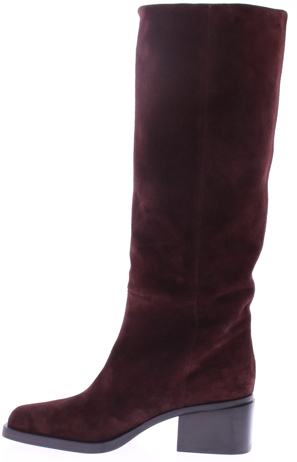Bordeaux suède dameslaars van Elena Iachi. Deze lange dameslaars is uitgevoerd in bordeaux suède. De lichte carré neus geeft een verfijnde vorm, terwijl de blokhak van 5 cm zorgt voor een stevige, comfortabele stap zonder in te leveren op stijl. De pasvorm en het soepele suède sluiten los aan om het been, waardoor dit model perfect combineert met zowel een skinny jeans als een midi-jurk. Een tijdloze, veelzijdige laars voor vrouwen die houden van kwaliteit en comfort.