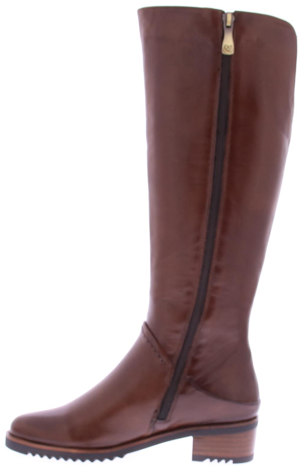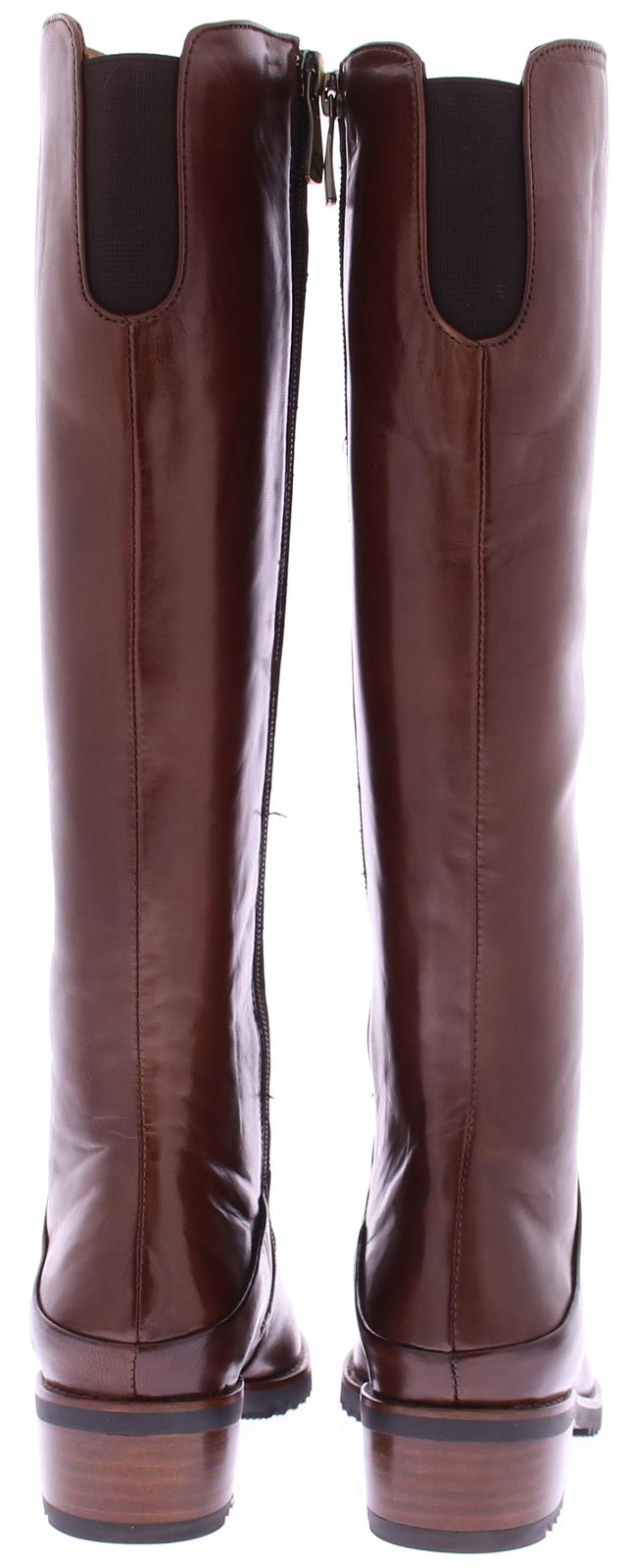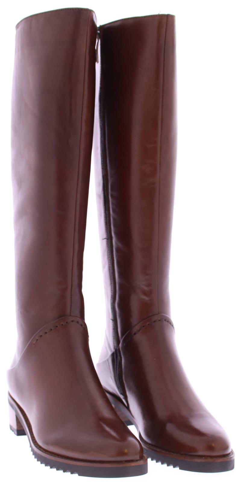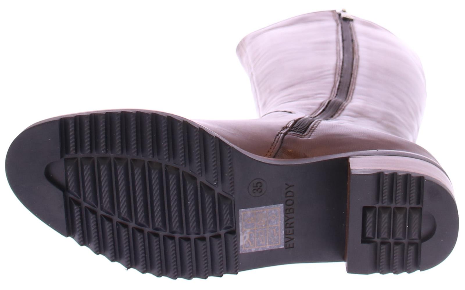 Middenbruin leren hoge laarzen voor dames van Everybody. Deze laarzen zijn gemaakt van soepel kalfsleer. De binnenkant is uitgevoerd in lekker zacht veloursmateriaal met een vast voetbed. De schacht is ongeveer 39 cm hoog en is over de gehele lengte voorzien van een rits. De elastische inzet bovenaan zorgt voor een fijne pasvorm. De rubberen hak met een houten detail heeft een comfortabele hoogte van circa 3 cm. Een rubberen profielzool maakt de boots compleet.