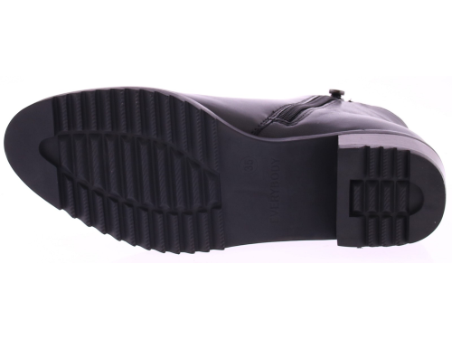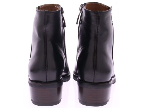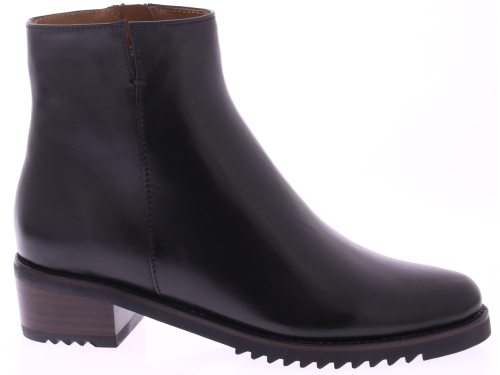 Zwart leren dames korte laars van Everybody. Deze laars is gemaakt van soepel kalfs leer. De schacht is ongeveer 12 cm hoog en is aan de zijkant voorzien van een rits. De houten hak met een rubberen onderzool heeft een comfortabele hoogte van circa 3 cm.