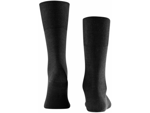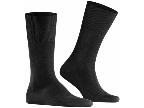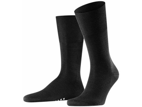 Falke Airport heren sokken in zwart. Dankzij de innovatieve combinatie van hoogwaardige merinowol aan de buitenkant en huidvriendelijk katoen aan de binnenkant zorgen deze kousen voor een uitstekende temperatuurregeling en een buitengewoon draagcomfort. De sokken hebben een vlakke naad voor een drukvrij teenpunt en een verlengde band voor een plooivrije pasvorm bij het been. Materiaal: 60% Scheerwol, 23% Katoen, 15% Polyamide, 2% Elastaan.