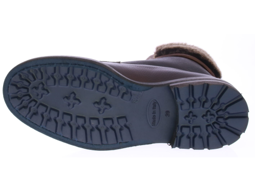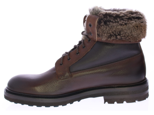 Donker bruine leren heren enkelboot van Flecs. De laars is gevoerd met vacht in de schacht van de schoen. De rest van het bovenwerk is van grain leer. De zool is van rubber.