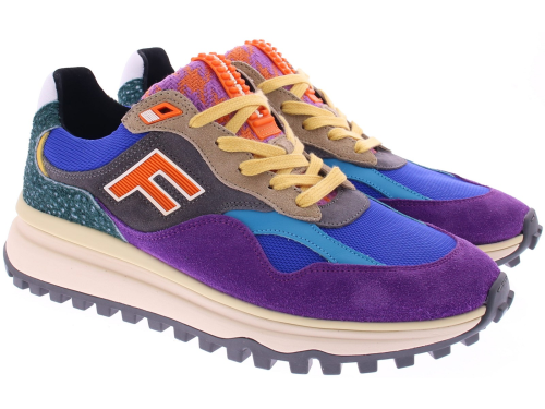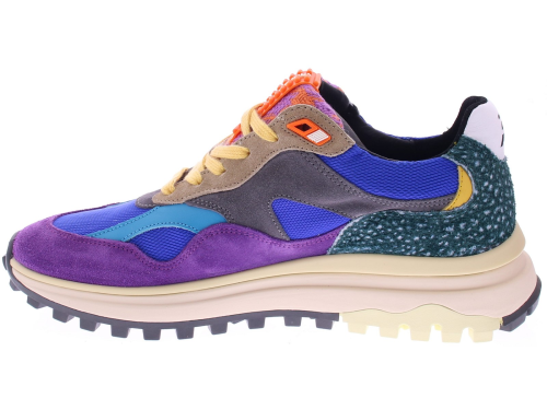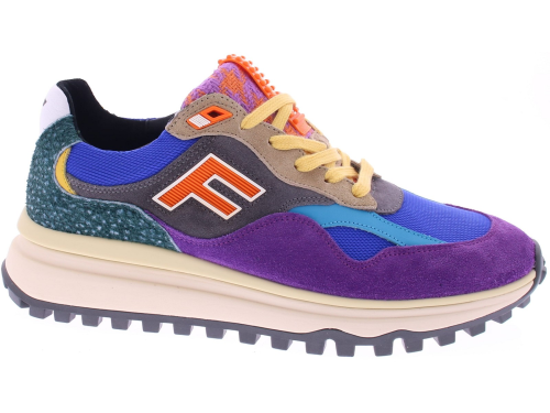 Op zoek naar een sneaker met lef? De Floris van Bommel De Gripper 05.01 is een opvallende eyecatcher die streetstyle en vakmanschap moeiteloos combineert. Uitgevoerd op de comfortabele G½-leest biedt deze schoen een perfecte pasvorm voor de gemiddelde tot iets bredere voet. Deze sneaker barst van de unieke details: een mix van hoogwaardige materialen zoals suède, mesh en leer in sprekende kleuren zoals paars, blauw en oranje. De robuuste zool met grof profiel geeft niet alleen extra grip, maar maakt de look ook compleet. De oranje accenten en het kenmerkende ‘F’-logo zorgen voor die onmiskenbare Floris van Bommel flair.