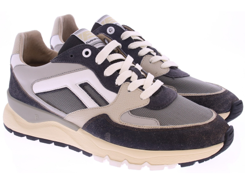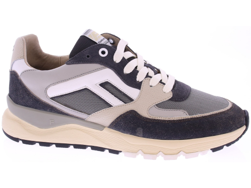 De Floris van Bommel De Treener 01.17 is een sportieve en moderne sneaker in een verfijnde combinatie van grijs, off-white en zwart. Deze sneaker is uitgevoerd in hoogwaardig suède, mesh en leer voor een stijlvolle maar ademende look. De chunky zool in een zachte crème- en zwarte tint geeft de schoen een eigentijds karakter en uitstekende demping tijdens het lopen. De zijpanelen zijn voorzien van het kenmerkende Floris van Bommel-detail, wat deze sneaker direct herkenbaar maakt. Dankzij de hoogwaardige afwerking en het comfortabele voetbed is dit model perfect voor dagelijks gebruik, of je nu de stad in gaat of een casual outfit compleet maakt.