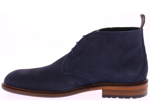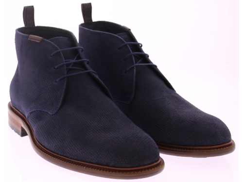 De Floris van Bommel De Normer 01.07 is een stijlvolle chukka boot in diepblauw suède met een verfijnde structuur. Het model combineert klassieke elegantie met een modern silhouet en is voorzien van een stoere rubberen loopzool met een subtiele profielrand. De donkerblauwe kleur maakt deze schoen makkelijk te combineren met zowel zakelijke als casual outfits. leest H De Normer staat bekend om zijn perfecte pasvorm en comfortabele draaggevoel. Dankzij de stevige hiel en zachte binnenvoering is deze boot ideaal voor dagelijks gebruik. Een must-have voor de man die op zoek is naar een nette, maar eigentijdse look.