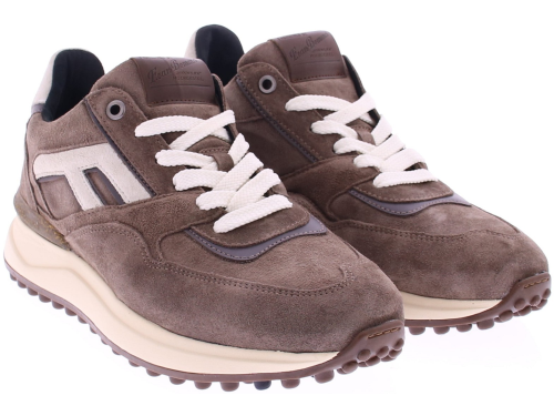 Deze Floris van Bommel Noppi 29.45 sneaker is uitgevoerd in taupekleurig suède met lichte accenten en een opvallende chunky zool. De sportieve uitstraling wordt gecombineerd met hoogwaardige materialen en een comfortabele pasvorm. De leest is G1/2. De herkenbare zigzagzool zorgt niet alleen voor extra grip maar maakt deze schoen ook stijlvol onderscheidend. Ideaal voor wie op zoek is naar een casual sneaker met karakter.
