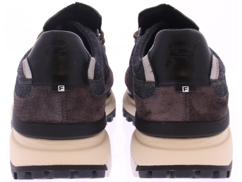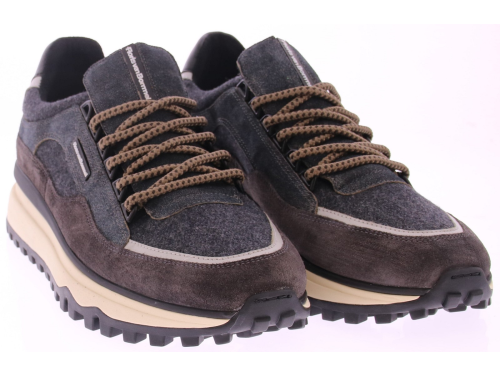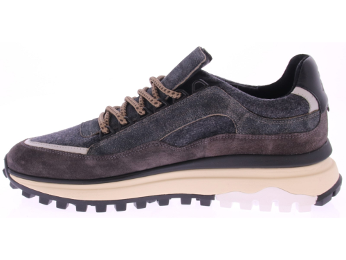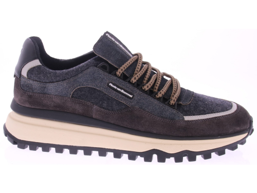 De Floris van Bommel De Gripper 03.00 is een stoere, outdoor-geïnspireerde sneaker met een robuuste look en verfijnde afwerking. Het bovenwerk is gemaakt van donkerbruin suède in combinatie met grijze wollen accenten. De dikke, gelaagde zool met grof profiel zorgt voor uitstekende grip en geeft de schoen een krachtige uitstraling. De brede veters en het subtiele Floris van Bommel-logo maken het ontwerp compleet. Deze sneaker is ontworpen voor comfort en stijl: ideaal voor dagelijks gebruik of een avontuurlijke citytrip. Een perfecte balans tussen casual luxe en praktisch design – precies wat je van Floris van Bommel mag verwachten.