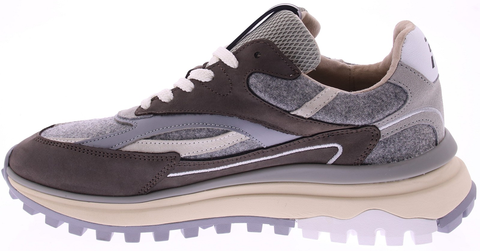 Floris van Bommel De Gripper 02.11 Grijs/Beige Sneaker De Floris van Bommel De Gripper 02.11 is een opvallende herensneaker met een frisse, moderne look. Deze uitvoering combineert grijs nubuck met lichtgrijze wollen accenten en een contrasterende off-white zool. Het resultaat is een sportieve en stijlvolle schoen die naadloos aansluit bij zowel casual als urban outfits. De robuuste profielzool biedt extra grip en comfort, terwijl de speelse belijning en het Floris van Bommel-logo zorgen voor een premium uitstraling. Een perfecte balans tussen innovatie, stijl en draagcomfort. Productkenmerken Modelnaam: De Gripper 02.11 Artikelcode: SFM-10172.32-02 Merk: Floris van Bommel Kleur: Grijs / Beige Materiaal bovenwerk: Suède en wolmix Voering: Ademend textiel Binnenzool: Uitneembaar en comfortabel voetbed Zool: Grijze rubberen profielzool voor extra grip Sluiting: Vetersluiting Pasvorm: Normaal Stijl: Sportief met een moderne twist Details: Subtiele branding op de zijkant en tong