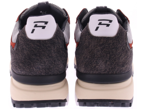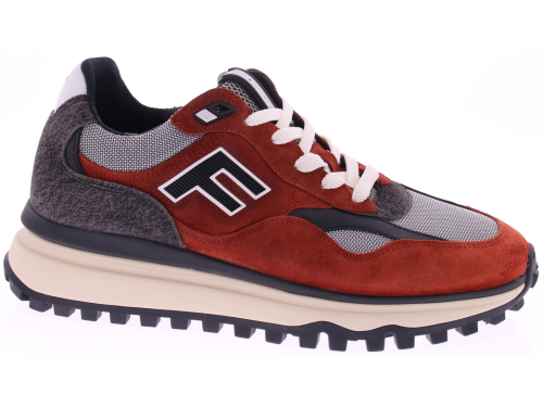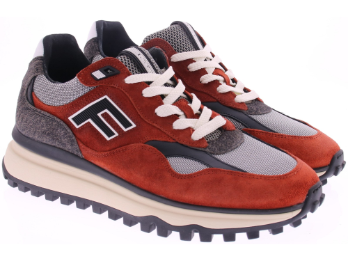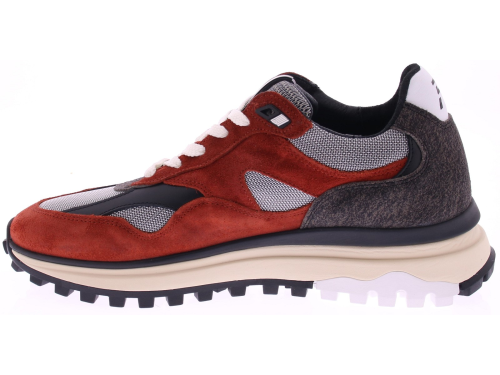 Deze stoere Floris van Bommel sneaker springt in het oog met zijn diepe roodbruine suède, grijze wollen accenten en zwarte details. De sportieve zool met grof profiel biedt niet alleen extra grip, maar onderstreept ook het robuuste karakter van deze sneaker. De leest van deze sneaker is G1/2 en het voetbed is uitneembaar. Een opvallend kenmerk is het grote ‘F’-logo op de zijkant, dat zorgt voor een moderne, sportieve uitstraling. De combinatie van hoogwaardige materialen en comfortabele pasvorm maken deze sneaker tot een must-have voor de stijlvolle man.