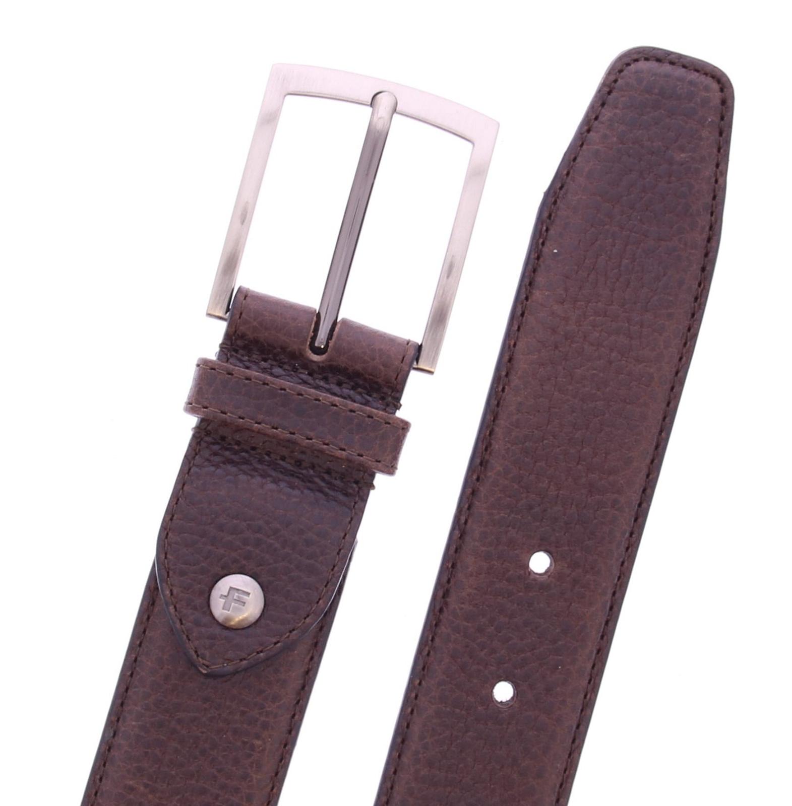 Donkerbruin kalfsleren herenriem met een fijne nerfstructuur van Floris van Bommel. De riem is in te korten aan de gespkant. en hoort bij een schoen uit onze collectie met artikelnummer:44256