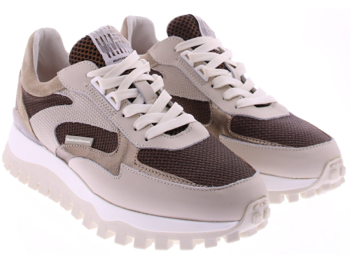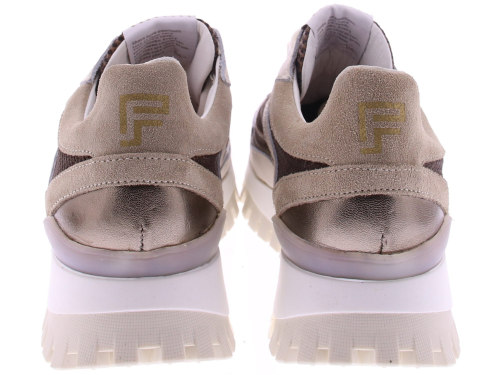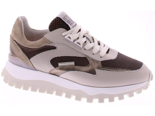 Beige/bruine dames sneakers van Floris van Bommel, model Grommi 03.06. Een combi van leer, metallic accenten, suède en leer met print geeft deze sneaker een moderne, gelaagde uitstraling. De stevige profielzool zorgt voor uitstekende grip en een licht verend loopcomfort. Het uitneembare voetbed kan eenvoudig worden vervangen door uw eigen persoonlijke inlegzool. Een stijlvolle keuze voor wie houdt van comfort met een modieuze twist. Ontdek ook de andere dames sneakers van Floris van Bommel bij Klijsen.